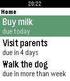 Unofficial client application for Tracks - an excellent Getting Things Done implementation. What it does: - displays list of active todos, together with due dates, - toggles between done and incomplete, - displays task notes. Usage: - select to see item's note, - long select to toggle between done and not done. You need to have Tracks instance setup. This watchapp is useless by itself. For more details how to do it, visit http://getontracks.org/.