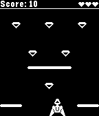 Collect diamonds, avoid walls, destroy the enemy ships. Tilt watch left / right to move your ship.
