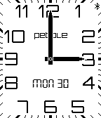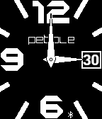 English: Clean, classic and modern analogwatch. For all who love their Pebble and Pebble STEEL. - Clean & simple - Easy to read - Bluetooth-Marker inside digit 6 - Vibrates on lost connection - Analogdate - No secondhand - No other options - Battery friendly NOTE: This watchface has been generated with the help of Rode´s "Watchface-Generator.de". Tally inspired - Analog Classic series inspired by Lukasz Zalewski´s "Tally". Deutsch: Klare, klassische und moderne Analoguhr. Für alle die es lieber STEELvoll mögen. - Klar & einfach - Leicht ablesbar - Bluetooth-Marker in Ziffer 6 integriert - Vibriert bei Verbindungsabbruch - Analoges Datum auf 3 Uhr - Kein Sekundenzeiger - Kein sonstiger Schnickschnack - Batterie schonend HINWEIS: Dieses Watchface wurde mit Hilfe von Paul Rode´s "Watchface-Generator.de" erstellt. Tally inspired - Analog Classic Serie wurde inspiriert von Lukasz Zalewski´s "Tally".