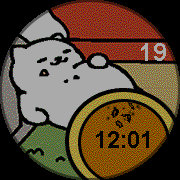 Neko Atsume Tubbs watchface. White and floofy like a marshmallow. A very hungry marshmallow. Shake for time . . . don't shake too hard. Tubbs is digesting.