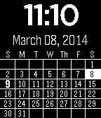 An interactive month view calendar that checks the calendars on your Android device and displays days which have an event in bold. Press center button to see an agenda view with event date, title, start time and end time.