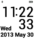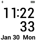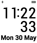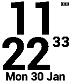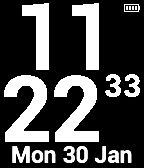 Simple big digital watch face, seconds day date month, battery indicator.