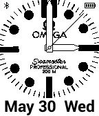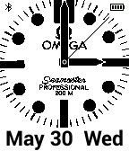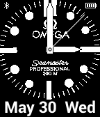 Omega style inspired face with month, date and day. Connection and battery indicator. (NB In no way associated or connected with Omega and its products).