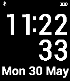 simple digital face with month, date, day. battery and connection indicator.
