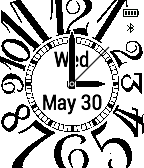 Classic analogue with numbers. Day, month, date with battery and connection indicator.
