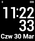Simple watch face, date with day and month in Polish. Battery indicator. Connection indicator.