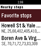 Check bus or transit time everyday? You'll love this app! CatchOneBus will show nearby transit stops and live arrival times. You can save any stop as favorite and CatchOneBus will show your favorite stop's live arrival time immediately when you are near that stop and open the app. You can shake your Pebble to update the information in real time. Currently works in the following list of cities and areas and supported by the public transit API provided by various organizations and agencies. • Seattle, Tacoma, Bellevue, Everett, WA (OneBusAway) • Portland, Beaverton, Gresham, Hillsboro, OR (TriMet) • Boston, Cambridge, Medford, MA (MBTA) • New York metropolitan area, NY (MTA) • Tampa Area, FL (HART) • Vancouver, BC (Translink) Using Tips: • Make sure to turn on location services on your Pebble Time app on the phone. • Save a bus stop as favorite for easy access, especially for your daily used stops for commute. • Set quick launch on your pebble watch for CatchOneBus to achieve checking commuter bus real time with one click. App developed by Yaoyu Yang and Dian Zhang. Give us a like or feedback!