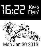 Based on cult TV series FireFly. Featuring image of Serenity, digital time and analog date.