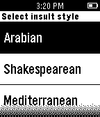 Whenever you need an unorthodox insult line - this app will be there for you. Select insult style from - Arabian - Shakespearean - Modern - Mediterranean. Based on autoinsult.com