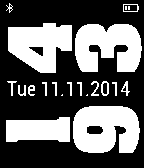 - Simple watchface showing date and time in big font in striped pattern. - Thin line at the bottom is a battery indicator, length equal remaining charge - Stripe pattern is configurable via options