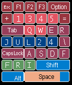 A watchface that resembles a keyboard. - 2nd row shows time - (3rd row shows AM/PM in 12h mode) - 4th row shows date - 6th row shows day of the week - space bar shows watch battery level