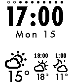 Another weather watchface with weather forecast. Edited watchface Weather My Way - INVERTED. Location services on your phone must be enabled and always on because location is automatically determined. Battery status 1 full dot = 10% of battery. For hourly forecast needed free API code, that can be generated on site http://www.wunderground.com/weather/api/ Weather by Yahoo! or Open weather. Celsius or Fahrenheit in settings. Weather update every 20 min. Last time update of weather and location is available when Debug Mode in settings is turned ON.