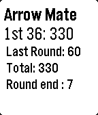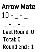 Outdoor archery target scoring app. Select score with the up and down buttons, enter score with the select button and delete the last score by holding down the select button. Hold the up key for view of all past scores. You can delete scores back to the start of your scoring. After every 36 arrows it will notify you of your round total for the last 36 arrows. After 144 arrows it will give you your end total and each round total.