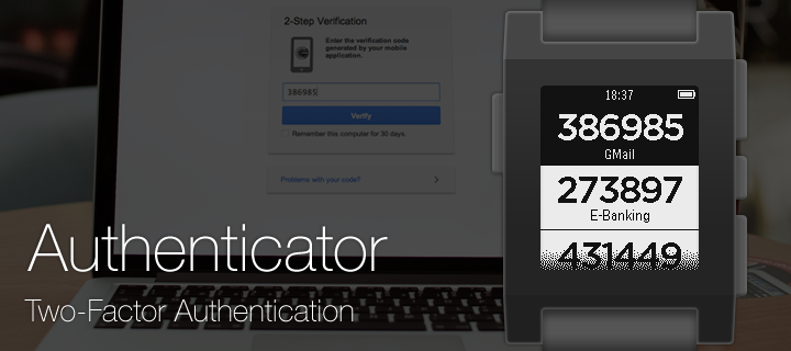Generate Google Authenticator two-factor authentication codes right from your Pebble! Perfect for use with the most popular two-factor authentication systems, including GMail, Dropbox, LastPass, Amazon Web Services, and many more.
