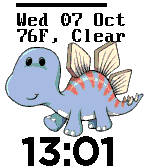 BabyDino Time Time, Date, Weather, Battery Bar, BT disconnect double vib, & BT disconnect image. Every 30 minutes BabyDino Time loses health. Your attention is what makes him Happy & Healthy! Tap or shake to show BabyDino Time you care! (After a shake or tap, give BabyDino Time a moment to react.) Tamagotchi, Virtual pet, Digital pet. donations [email protected]