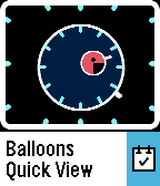 Continuing the theme of cryptic analog watchfaces, following Passenger and Backwards. This one has a minute balloon floating within an hour balloon - the "tails" (lines) from each point towards the appropriate markers telling the time. An A (AM) or P (PM) appear within the minute balloon. Screenshots: 9:25 AM, 5:56 PM , 12:45 PM, 4:12PM (with Quick View)