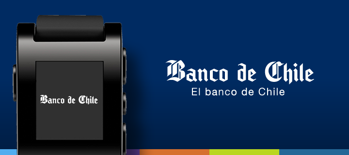 Banco de Chile ofrece a sus clientes una exclusiva aplicación para Pebble. Con esta App podrás consultar tu saldo de Dólares-premio, beneficios, descuentos en restaurantes e indicadores económicos.