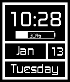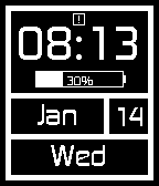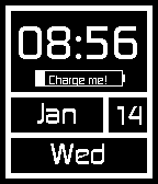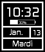 - Now supports French, German and Spanish. A clean and simple watch-face giving you all the information you need in a glance. Shows : - Time (12h/24h depending on system setting) - Full/Abv. Month of the year (space permitted) - Day of the month - Full/Abv. Day of the week (space permitted) - Bluetooth disconnect indicator. Short pulse vibration for Bluetooth dis-connection. And as the name suggests : - Battery status (Shows the charge left. Also shows remaining charge percent and "Charging.." when plugged in). When battery level drops to 10% it will say "Charge me!" on the battery bar.