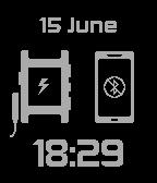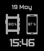 Displays the battery level of your Pebble, and (optionally, with the companion app) your connected phone! Also displays if they are charging, and even if your phone has lost connection with your Pebble.