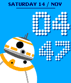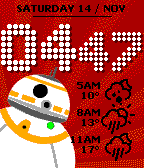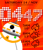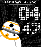 Bip beeep blop bebloup bleep beep ! Here is your favorite StarWars robot ! Shake it & give love to BB8 !! (and take a look at R2D2's FACE too !) -- -- Colors -- Chooses the best ! You prefer black ? Blue ? Orange ? Plain background ? As you wish. -- -- Weather -- Enable or disable it. Shake your wrist to update it, Celcius or Farenheit, API key, City or GPS ?... ENJOY ! -- -- Battery -- Enable or disable it. Look at the line between date and time ! Big ? It's ok ! Tiny ? Find an outlet ! -- -- Bluetooth -- Enable or disable it. You see the green (or red ??) round on BB8's body ?? Here is it ! -- -- Vibes -- Every Hour ? (if you want). -- -- [FR] Watchface configurable : couleurs, météo, bluetooth, batterie et vibrations... Une idée ? Une envie particulière, envoyez moi un mail !