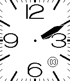 Well known watchface style inspired, includes date, configuration window with option to choose: - seconds - color - hourly vibrations (and set hours)