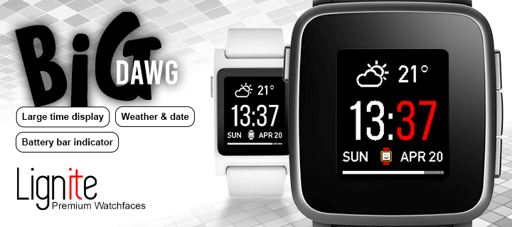 ...got that dawg in you? Big Dawg features the time in a very large font, weather, date, and battery bar. Customize every single colour to your liking in settings, along with weather and Bluetooth disconnect / reconnect alerts! ❤️ If you like Big Dawg, please give it a heart! ❤️ -- This is a premium watchface that comes with a full trial. To unlock forever, you can buy this face for US$1.99, or for US$5.99 you can get our Lifetime Bundle which includes all of our current and future Pebble watchfaces forever.