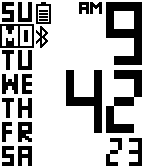 Simple watchface with big solid digits. Big Digits features: - current time with seconds; - AM/PM icon for 12-hour format; - current week day; - auto or manual color mode (via settings page); - vibrates on Bluetooth connection lost (optional); - Bluetooth status; - battery level. Next milestone: - show date; For any feedback, please mail me via link below! Thank you! :)