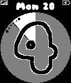 Watchface to easily know time with a fast look and go in detailed minutes if needed. - Shake in the first 15 seconds to change among 5 available styles. - icon for battery low (<20%) and for loosing connection (pebble will vibe). - Day of week and day of month Screenshots: 1) 4.19 2) 4.26 3) 4.44 low battery,no signal 4) 4.53 charging, signal is ok but it was lost in the past 5) 5.09