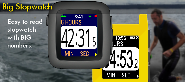 Having trouble seeing those small numbers while exercising? Try the Big Number Stopwatch and be able to check the elapsed time quickly. Press the bottom bottom for start/stop and the top button to reset the time. Pressing the middle button momentarily shows the current time, and a long press raises the settings menu. Customizable settings are available, plus the time is restored if you briefly switch apps.