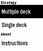 Blackjack Strategy is a simple application used as a reminder for the basic strategy. A page must be selected based on the current hand of the player and the recommended move is displayed in the table.