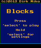 This is an arkanoid-clone for your pebble. Control: 'up' - move left 'select' - start / pause game, (enter settings on long press) 'down' - move right There are eight different kind of 'power-ups': 1. extra ball 2. slow ball 3. fast ball 4. 'power'-ball (destroys blocks without being reflected) 5. missile launcher (automatically launches missiles from your paddle) 6. shield (ball bounces at floor) 7. Solid2Normal (turns solid block into normal, destroyable blocks) 8. 1UP (adds an extra live)