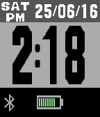 ** Now Configurable ** Select the date format Hide hour leading zero Show Second Background and foreground color for each section Bluetooth vibration on state change Bluetooth image for connect or unconnected. English, Français, Deutsch, Español Date : mm/dd/yy Bluetooth Battery level 12h / 24h Français Date: jj/mm/aa Bluetooth Niveau de la pile 12h / 24h Deutsch Datum: TT.MM.JJ Bluetooth Anzeige Batteriestand 12h / 24h Español Fecha: dd/mm/aa Bluetooth Nivel de batería 12h/24h