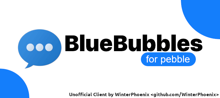 Send iMessages using your Pebble smartwatch! BlueBubbles works independently of the smartphone you have. This works with both iOS and Android! # Requirements 1. A Pebble smartwatch (w/ microphone, for now) 2. A Rebble voice subscription 3. A BlueBubbles server See the Source Link for more info!