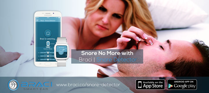 Description Braci - Snoring Detector App able to detect snoring during night using ( Braci -Snoring Detector App on google store ) using microphone to detect the snore & notify you by short vibration pulses just to notify you to change the wrong position of sleeping,very useful app can solve snoring problem,Make sure download the companion App on Google Store https://www.youtube.com/watch?v=q5n9aK6dVVM For more in info visit our website : www.braci.co