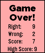 This fun math game challenges players to identify as many right and wrong equations as possible in 30 seconds. High scores are saved to the app so you can challenge your friends to see who can get the highest score! Flick your wrist after the game ends to try again!