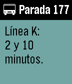 Programa para conocer el tiempo que tardan en llegar a las paradas los autobuses de Elche. Permite guardar paradas favoritas manteniendo el botón de selección pulsado durante más de 3 segundos. Agita para obtener los tiempos actualizados.