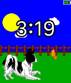 Butterfly Chase is a fun, whimsical watchface that is designed around a Papillon dog playing with a butterfly. The passage of time is revealed throughout the day as the sun moves across the sky and the sky changes color. At night the moon and stars come out and the Papillon finds a bed and goes to sleep.