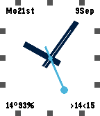 Complications-Analogue. A highly customizable watchface yet with minimal design and fast code. Each corner has a "complication" with 2 customizable slots—you can show 8 pieces of data! There are many options to choose from: time, date, weather, battery and more, check out settings. The colors can be changed and the background inverted for your own personal look! * Line on the minute hand shows battery level. * When plugged in the second hand blob moves to the other end, and when charging it disappears. * Second hand can be disabled to reduce battery usage. * If the battery gets to 20% the second hand disappears to reduce battery usage. * If bluetooth connection drops the middle dot turns white.