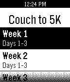 A simple Watchapp that provides users with timers for each interval of the popular Couch to 5K running program. It features each workout for each of the 9 weeks, so you can simply select which workout you are at, and the timer begins. You will be alerted with a vibration when the current interval is done.