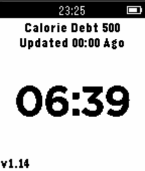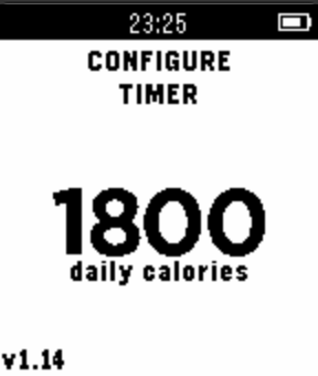 CalorieTimer turns Calorie counting upside-down! Instead of counting the number of Calories you consume in a day, the CalorieTimer counts down the amount of time until you can next eat based on any Calories you input. You simply press the UP button for each 100 Calories you consume, and this adds a given amount of time to the timer, which counts down to zero letting you know when you have used up those calories. The magic is that it does not matter if you reach zero every single day, or if you only reach zero once in a month or ONCE A YEAR!, it is the exact same number of calories consumed up to that point, giving you the same results! Now counts NEGATIVE calorie debt to track your overall deficit! (optional and configurable). *UPDATE* : 20-05-2015 : v1.15 - added negative calorie debt feature (configurable). *UPDATE* : 03-05-2015 : v1.14 - added feature to allow configuration of calorie increment amount per button-press (100 calories is default). Usage; 1. pressing UP or DOWN will add or subtract 100 calories from your timer. 2. pressing the MIDDLE button will allow you to configure the amount of target calories per day (default 1800). 3. strongly suggested that you add this as a quick-launch for ease of use.