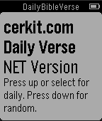 This is a simple app that displays a daily bible verse (New English Translation). It can also display a random verse. Scripture quoted by permission. All scripture quotations, unless otherwise indicated, are taken from the NET Bible® copyright ©1996-2006 by Biblical Studies Press, L.L.C. All rights reserved.