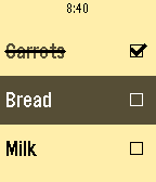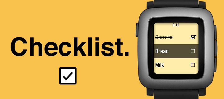 A checklist on your watch! Grocery shopping will never be the same. You can use Checklist to keep track of anything you need without needing to hold your phone: things to-do, shopping, and more! - Add items however you like: You can enter items directly on your phone via the settings page, or directly on the watch via voice input (if supported). Like the app? Please "heart" it! "...only one app, a simple list-making app called Checklist, which uses the watch’s microphone to add tasks, really proved useful." —MIT Technology Review "I loved the convenience of adding items to the Checklist app just by speaking" —Tom's Guide ****** Note: If voice isn't working, make sure your Pebble Time app is the newest version (3.6.1 on Android, 3.3.1 on iOS) and that your Pebble is running firmware 3.6 or higher. You can check under "Support" in the Pebble Time app.