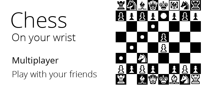 This is a public multiplayer beta, development is continuing. Pebble Chess is an entire chess board on your wrist. Play with your friends over wifi or data. Ponder what your next move will be while the board is always a glance away. Think deeply, or make a move.