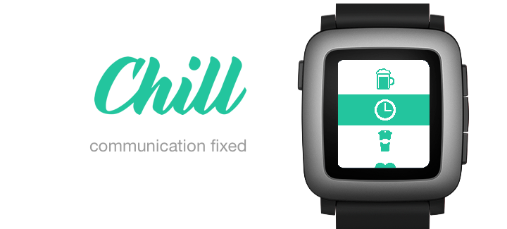 Chill - Finally! A communication app on the Pebble watch that makes sense Chill let's your communicate from your Pebble to other Pebble's and devices without using text or voice Here is how it works: Send a “coffee mug” icon means “At Starbucks by your office” Send a “rocket” icon - “Running late” Send a “beer” icon - “Hanging out with friends at Hard Rock” Chill will make your life easier! Enjoy!