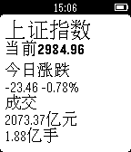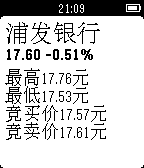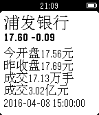 ChinaStock is a watch app for tracking stock information in Chinese stock markets. It only supports Chinese language right now. Please set the system language to Simplified Chinese first to use the watch app. ChinaStock是专门针对中国用户的股票查询Pebble应用。 使用前请先将Pebble手表的语言设置为中文,因为股票的名称都是以中文显示的,否则会出现乱码。 使用说明: 第一次打开,请按手表屏幕提示在手机上的Pebble应用里对手表app进行配置。以后也可以随时进行配置,更改关注的股票或者指数的代码。 配置方法:点击对应的Settings按钮会打开一个配置网页,里面可以设置您要关注的股票或者指数的代码。请按页面里要求的格式输入。 手表app的使用方法: 在第一个列表页,上下键选择项目,确定键进入项目详情,长按确定键刷新列表。 在详情页,上下键翻页,确定键刷新数据,返回键返回到列表页。 欢迎大家多提意见和建议,我会把它做得越来越好的。谢谢支持和鼓励!