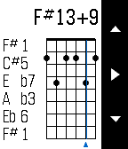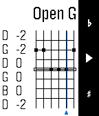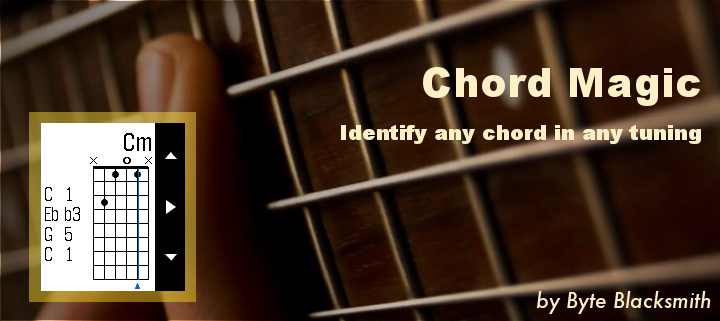 If you want to master guitar chords, Chord Magic is for you. To input a chord, use the Up and Down buttons to change what's played on a string: open, muted, or a particular fret. Tap Select to move to the next string. For every position, Chord Magic tells you the chord name, the notes played, and the chord spelling, which helps you understand how the chord is constructed and how to change it. Chord Magic examines the actual notes to determine the chord, so it's not limited to the chords you find in books. In fact, it was designed to help play in alternative tunings. To change the tuning, press and hold the Select button to switch to tuning mode. There, you can adjust each string's pitch by using Up and Down, and use Select to move strings. You can set any tuning you want, and Chord Magic will confirm when it recognizes certain common tunings. The tuning feature can set a Capo as well by moving all strings up a fixed number of frets. Once your tuning is set, press and hold Select again to return to Chord Mode.