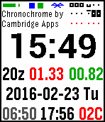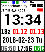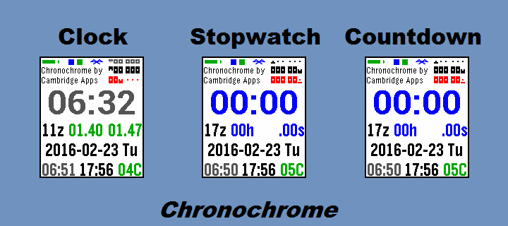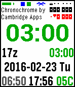 Chromochrome vibrates on the hour (in clock mode), and upon Bluetooth disconnection, starting the stopwatch or countdown, and countdown completion.