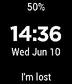 Clear Time displays only important things like hour, date, battery and bluetooth state with funny sentences. Easy to check the time and battery with a quick look. •12-24 hour style with date •Show&vibrate when the Pebble is disconnected •Show battery percentage and warning after 20% Hope you like it!