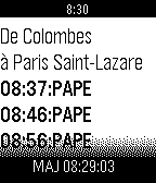 DailyEn un click consultez les horaires des prochains trains partant de votre gare d’île de France. Les horaires sont en tant réel actualisés à la minute avec des indications de retard éventuel. Un appui bref sur la touche du milieu actualise les horaires, un appui long permute les gares.