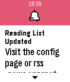 DailyHave a spare minute while waiting for something? How about reading the latest news from around the world, on your watch! You can simply scroll through a list of the latest news from various sources. Want to read the full article? We understand that the watch isn't the perfect place for that, but we have a solution -- simply select the headline and the app will store it to your personal online reading list*. The new category menu will automatically organise the categories you view most to the top of the list. NOTE: This is a beta release. Any feedback (negative and positive) are welcome. Over the coming weeks, both the Pebble watch app and the companion website (which is where you will find the reading list) will go through some iterations. *The personal reading list can be found online. Once a headline is selected an alert will pop up with the exact url, which will look something like https://rss-news.appspot.com/pebble/9.